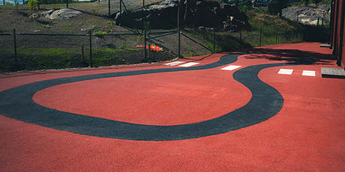 Fallskydd av gummi är formbart vilket ger oändliga designmöjligheter. Ni kan förvandla vilken lekplats, skolgård och aktivitetsyta till nästan vad som helst. Gummi är ett flexibelt material, fallsäkert, tåligt och anpassat för vårt svenska klimat som klarar vädret alla utmaningar året runt. Vårt gummi, som gjuts på plats, lever upp till säkerhetsstandarden EN 1177 för olika fallhöjder. Det är därför ett utmärkt val av fallskydd på lekplatsen, skolgården eller som slitstarkt underlag på sportanläggningar.