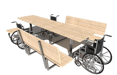 Unique design of products that allows all people to be included. By thinking new and sometimes a little differently, we tear down barriers in order for our products to create joy and community for as many people as possible. Our bench tables offer integrated seats for adults, children and wheelchairs. They are offered with armrests and backrests as well as a unique solution that allows people to enter and sit down and at the same time have a suitable distance between chest and table top.