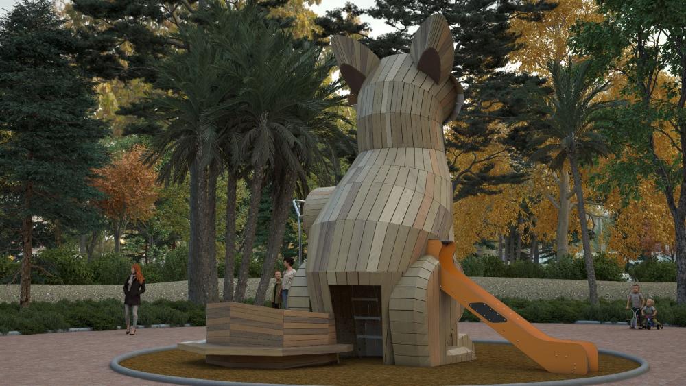 Designberättelsen om Rusty tog sin början i idén att föra in naturens smidighet och rävens nyfikna karaktär i leken. Räven, med sin intelligens och energi, är ett av de djur som bäst speglar barns dynamik. Med detta som inspiration har designteamet format Rustys gestalt utifrån rävens kropp – klätterelementen symboliserar smidighet, medan rutschkanor och balansmoment representerar rörelsefrihet.