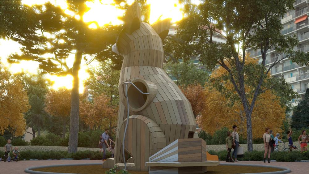 Rusty är en lekstruktur med unik design, inspirerad av naturen och formgiven som en räv. Den erbjuder inte bara barn fysiska upplevelser som rutschning och klättring, utan skapar också en lekmiljö som stimulerar fantasin och uppmuntrar till social samvaro. Träets varma känsla och den tematiska utformningen förvandlar leken till en upptäcktsresa för barn i alla åldrar. Samtidigt som den säkra konstruktionen ger trygghet för föräldrar, erbjuder Rusty barn både individuella och gemensamma lekmöjligheter, berikade av berättelser och äventyr.
