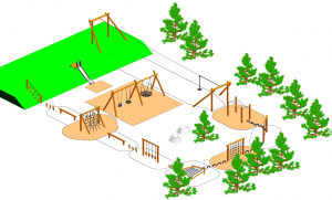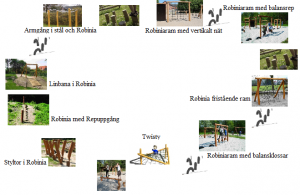 Kund har valt ut produkter i vårt sortiment Naturlek, d v s produkter tillverkade i Robinia. Kund önskar förslag på en sammanhängande balans- och motorikbana.