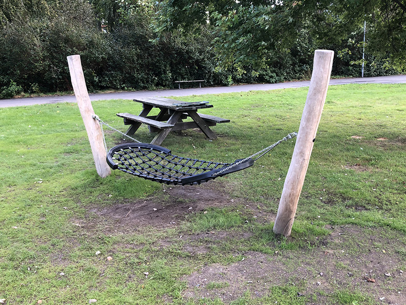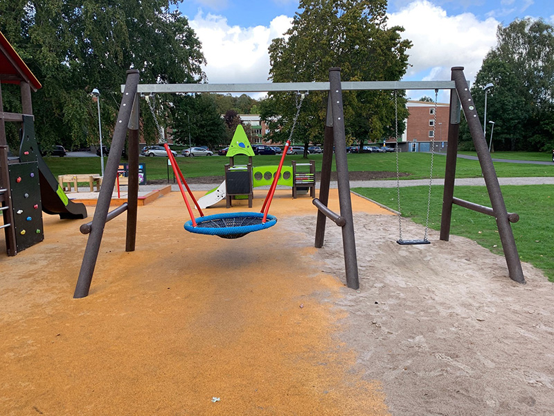 Andra produkter från KPLN i detta projekt var t ex en sammanhängande balansbana och en hängmatta i Robinia samt tillgängliga bänkbord och en tillgänglighetsanpassad sandlåda.