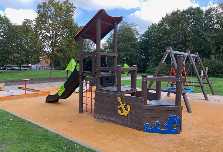 I Venaparken har KPLN levererat lekredskap ur sitt EKO-LEK-sortiment, där materialen spelar en central roll. Lekredskapen är tillverkade av Hanit – ett material baserat på återvunna plastförpackningar, som annars hade blivit avfall.