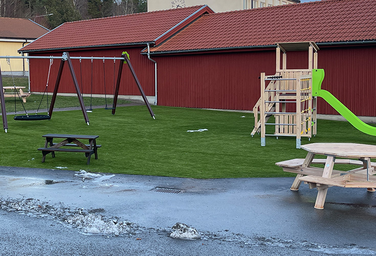 På Stjärnebo grundsärskola i Kinda kommun har KPLN projekterat och levererat en lekplats med tydligt fokus på tillgänglighet, variation och gemenskap. Lekmiljön har utformats i nära samarbete med beställaren och anpassats efter skolans verksamhet och elevernas olika behov.