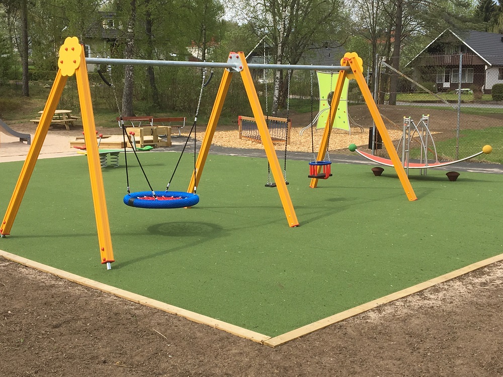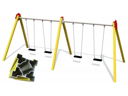 Gungställning med sidostolpar i aluminium och överliggare i varmgalvaniserat stål - för längsta hållbarhet! Sitsar och gungleder beställs separat.