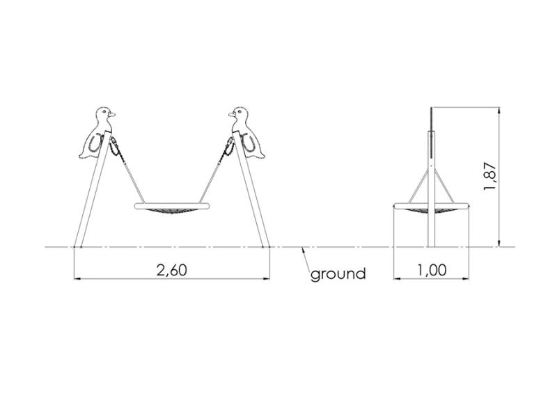 Ankgungan med kompiskorg Ă€r en enkelÂsitsig gungstĂ€llning i varmförzinkat stĂ„l, sĂ€rskilt utformad för smĂ„ barn som vill upptĂ€cka glĂ€djen i att gunga pĂ„ ett tryggt och stabilt sĂ€tt. Den robusta konstruktionen ger sĂ€ker lek, samtidigt som den passar perfekt in i bĂ„de moderna och klassiska lekplatsmiljöer. đżâš