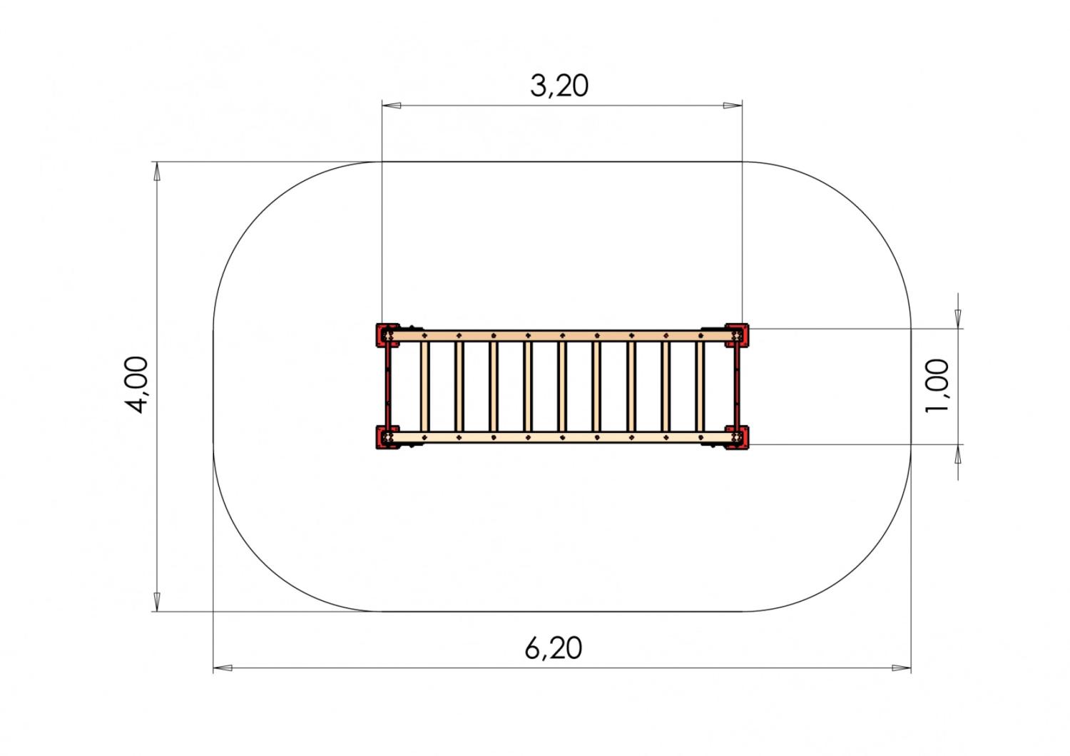 Balansbro med grundstomme i trä.