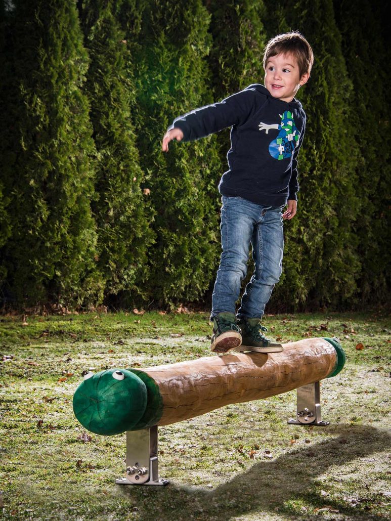 Completely made of robinia wood, the balance snake draco winds across the meadow. The unique design appeals to children and adults alike and encourages balancing – for effective coordination training at any age.