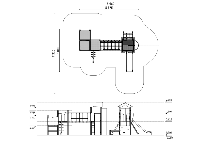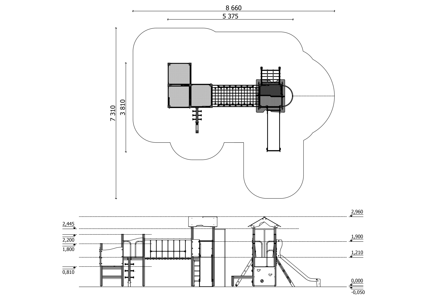 - En sammanlänkad plattform med tre höjder (0.40 m, 0.80 m, 1.20 m)