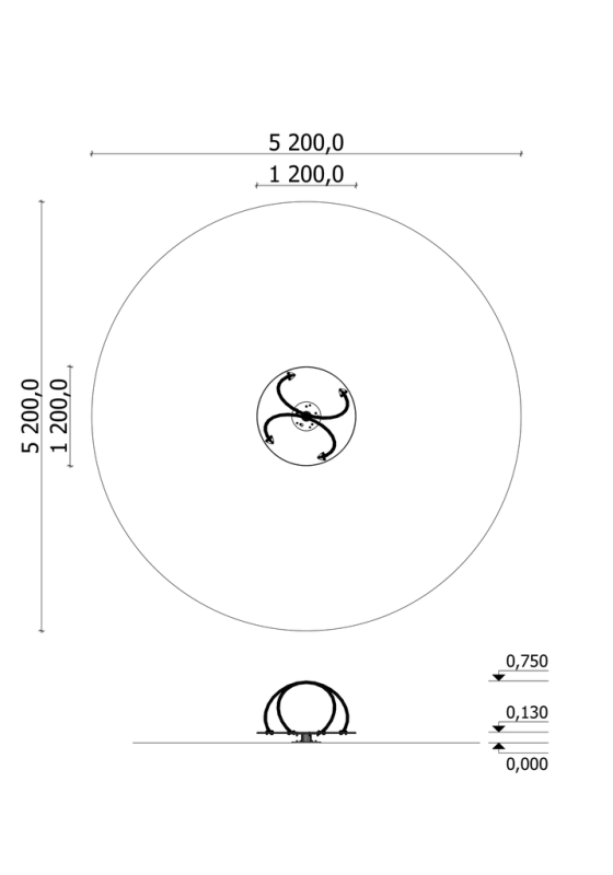 Karusell med slitstarkt golv och med stänger som ger barnen stöd när de snurrar sig runt, runt. Karusellen har en öppen design och erbjuder plats för flera barn.