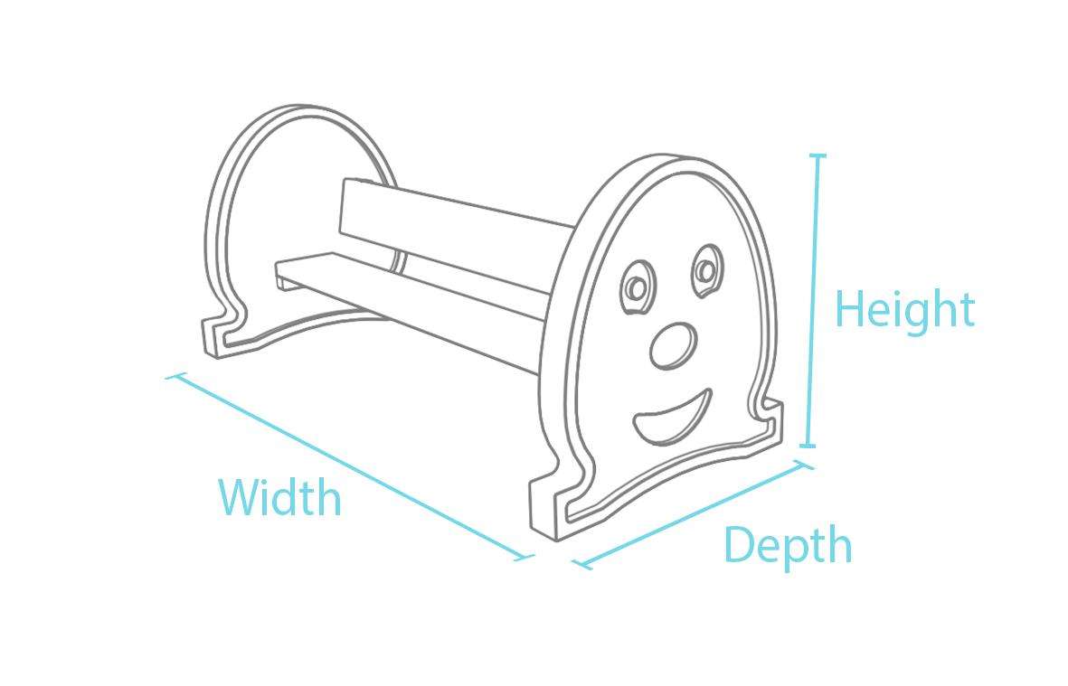 It is of course possible to sit still on this bench – but which child does! It is much more fun to draw on the bench. “Pippolino” even has a face to colour on (the chalk can easily be washed off). When toddlers become “wobbly teeth-kids”, this bench will still be with them. They grow together, as the bench is adjustable in height.- 2 bench boards (seating-/back board): 138 x 19 / 17 x 4 cm