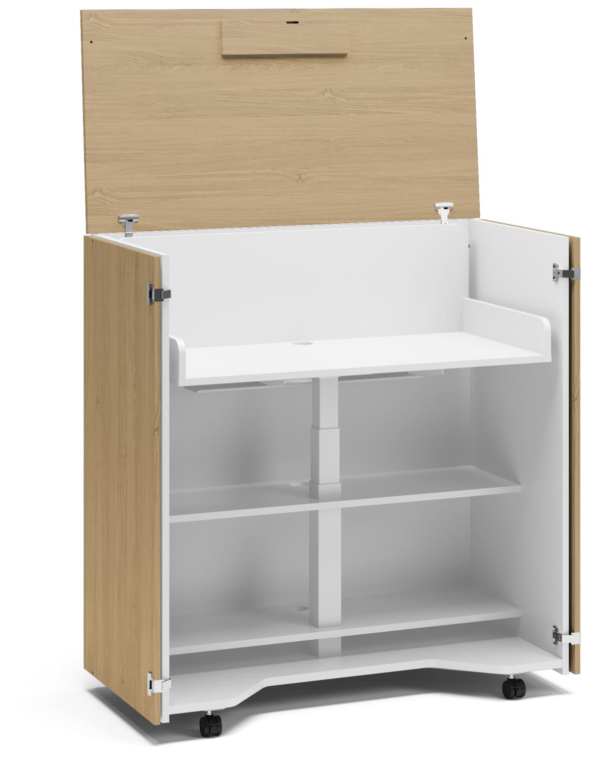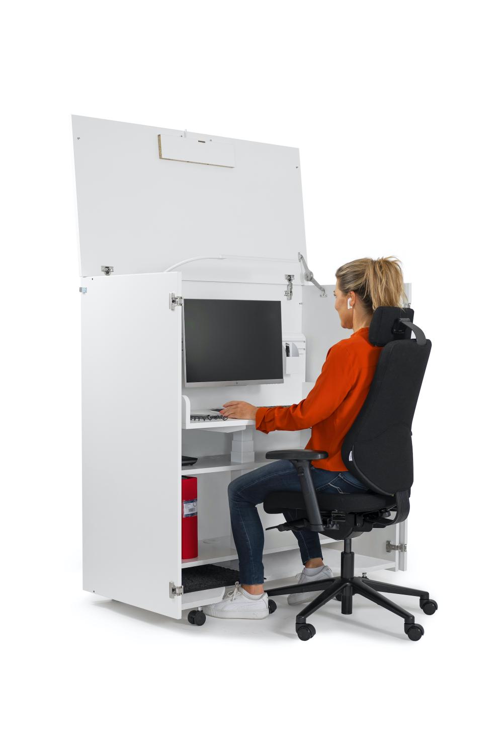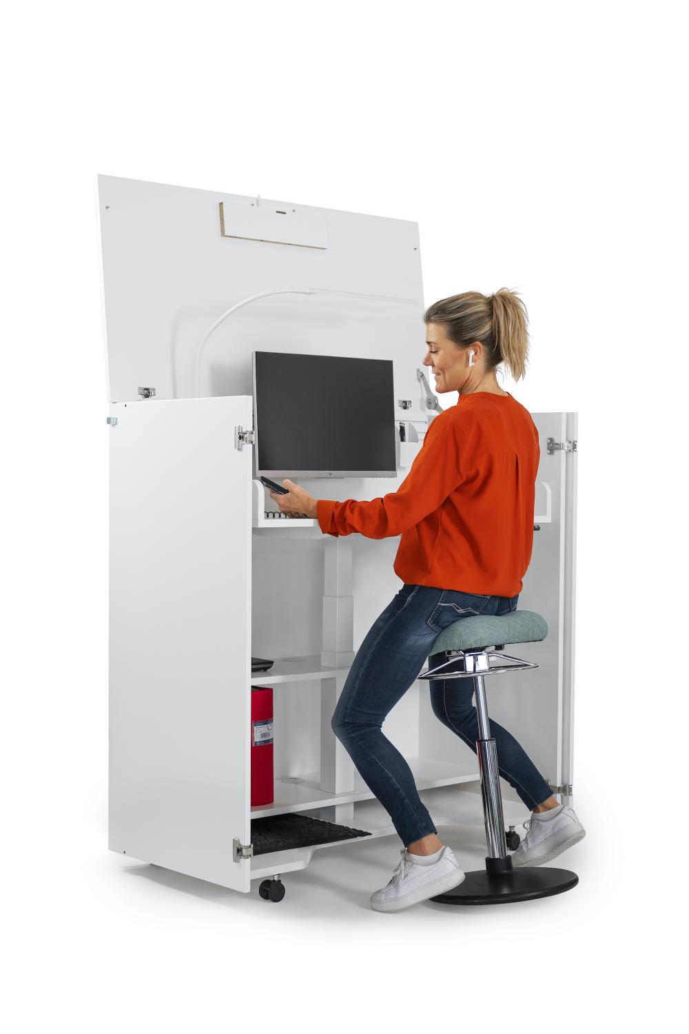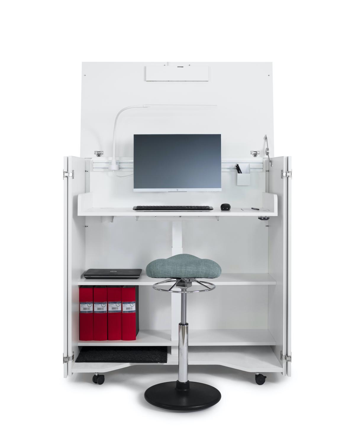 Cubic erbjuder rätt ergonomi med ett höj- och sänkbart arbetsbord med ståstöd som tillval, möjlighet att använda kontorsstol, komplett med laddstation, plats för förvaring och mycket lätt att flytta. Cubic är perfekt för hemmakontoret!