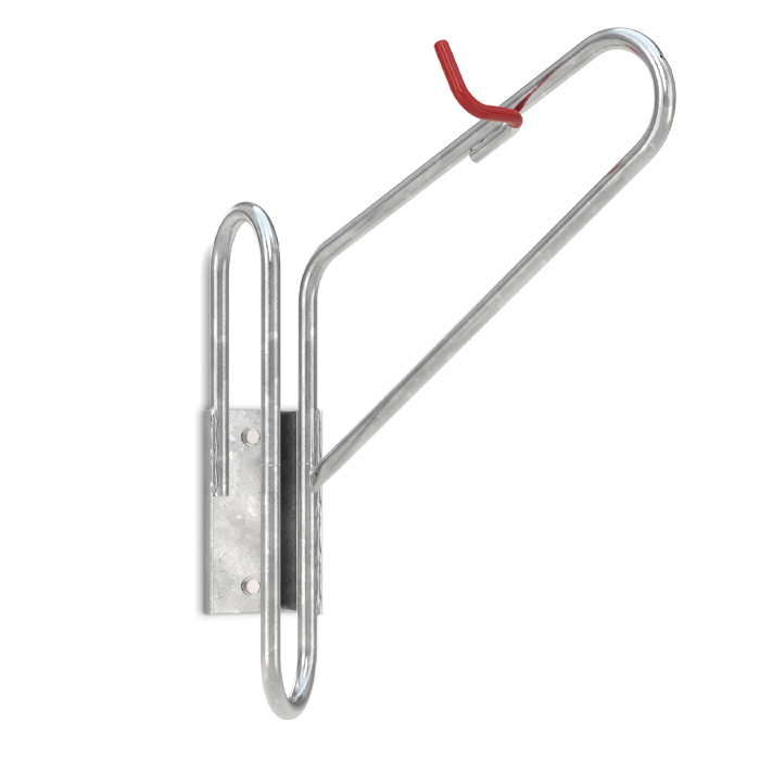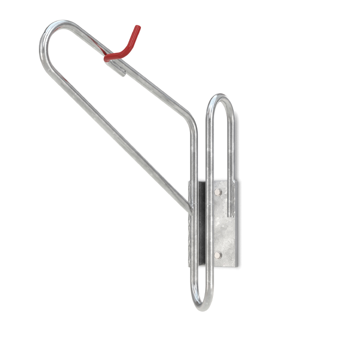 Cykelställ 3900 är ett smart och platsbesparande väggmonterat system som gör det enkelt att förvara cyklar på ett säkert och effektivt sätt. Den robusta stålkonstruktionen av rundrör har en kraftig monteringsplatta som ger hög stabilitet. Framdäcket hängs enkelt upp i en plastbelagd krok som skyddar fälgen mot repor och skador, medan de två stödbyglarna håller cykeln stadigt på plats.