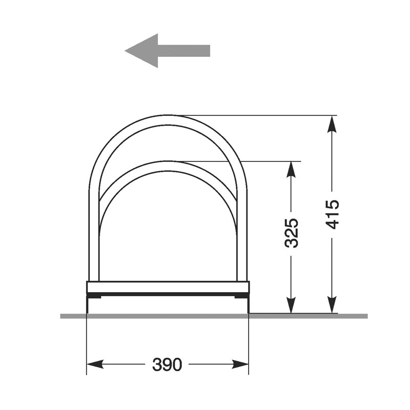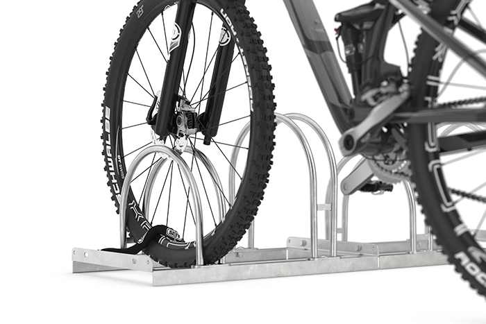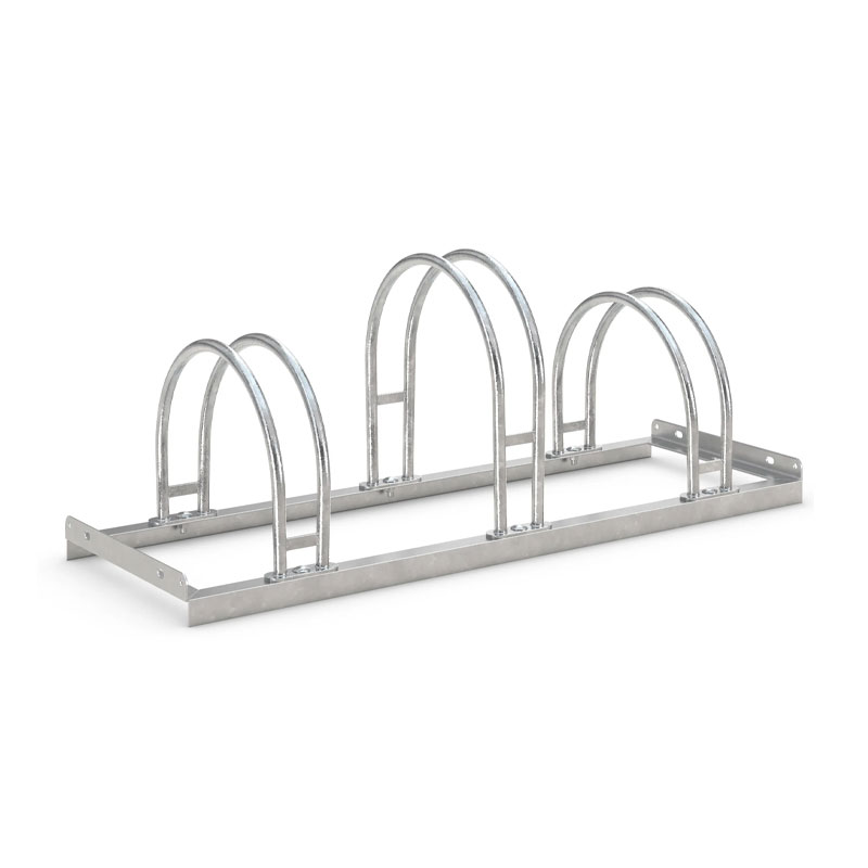 Cykelställ 5000 kombinerar elegant design med praktisk funktionalitet. Med sina diskreta, bågformade byglar erbjuder stället stabil och säker parkering för cyklar – även för modeller med bredare däck upp till 55 mm. Perfekt för platser där både utseende och funktion spelar roll, som utanför butiker, kontor, skolor eller vårdcentraler.