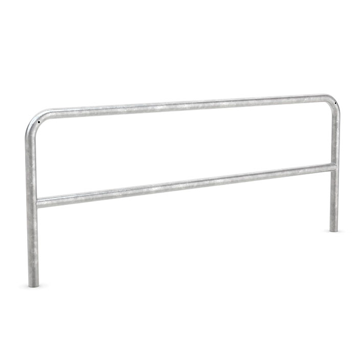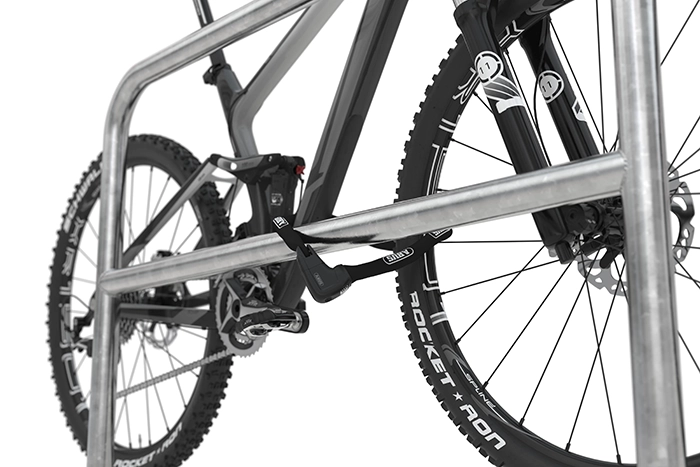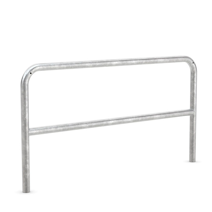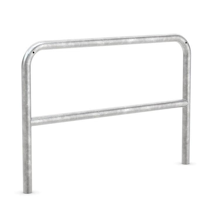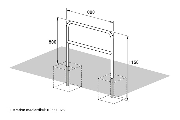 De justerbara bågarna kan monteras med valfritt avstånd för att passa olika typer och storlekar av cyklar, medan den horisontella tvärbågen (”knäbåge”) ger extra stabilitet och bekväm fastlåsning i ramen. För bultmonterade versioner finns även stolpförlängning (+200 mm) som tillval – perfekt om ytan ska beläggas eller asfalteras.