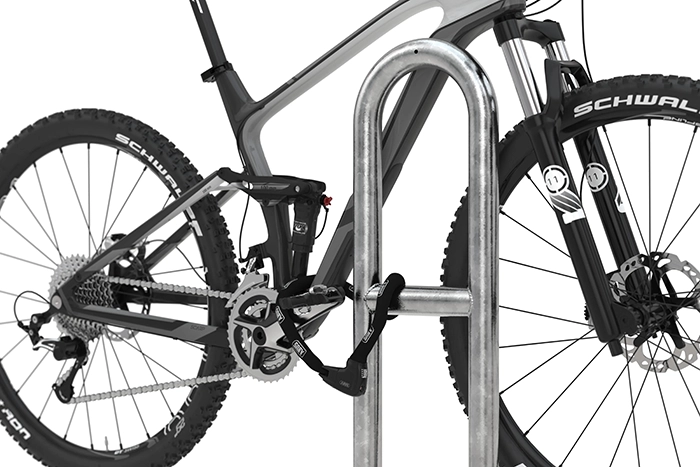 Med sin stabila konstruktion erbjuder den trygga parkeringsplatser för alla typer av cyklar och cykelkärror, samtidigt som den kan användas för att skydda träd, avgränsa ytor eller bromsa trafikflödet på lek- och gårdsgator. Cyklar kan enkelt låsas fast i den horisontella knähöga tvärbågen, vilket ger extra säkerhet.