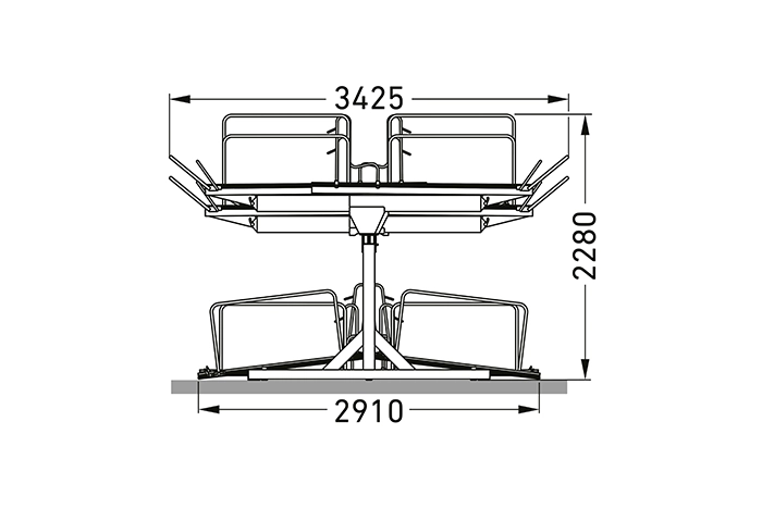 Artikel 105600049: 3270 × 2280 × 3425 mm (bredd x höjd x djup), vikt: 450 kg.
