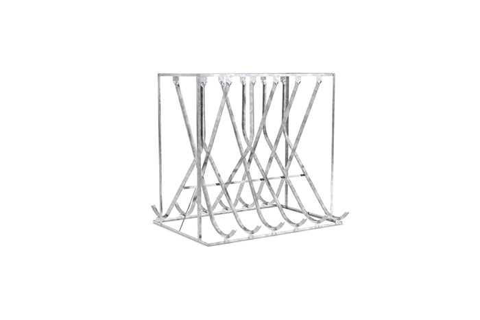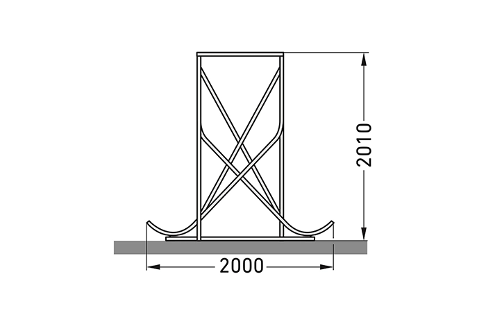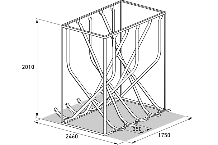 Med Snedställt cykelställ SW/SF parkeras cyklarna enkelt och platsbesparande i vinkel. Konstruktionen gör att hjulen står på 350 mm avstånd och i höjdledsförskjutning, vilket maximerar utrymmet utan att tumma på bekvämlighet eller säkerhet.
