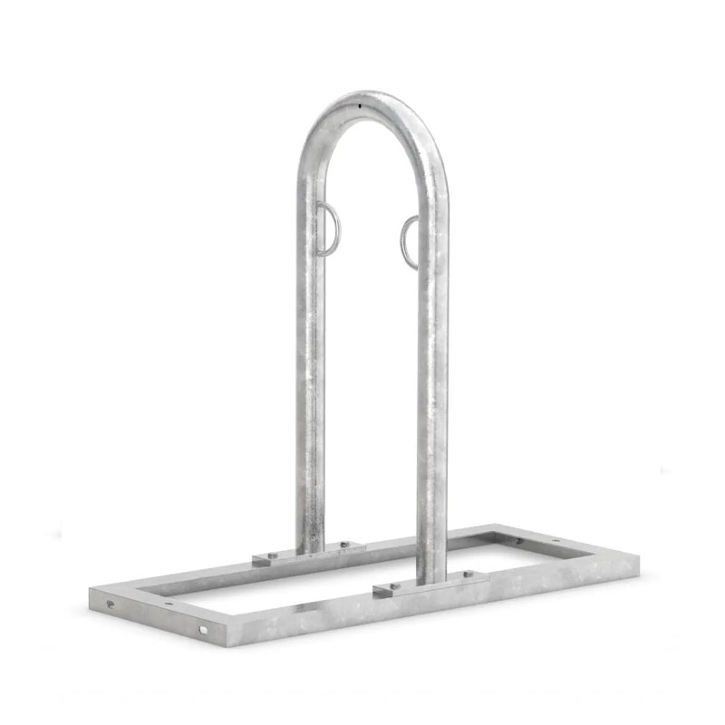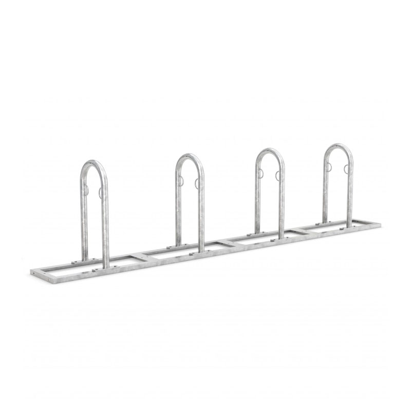 Skruv för att montera ihop flera ställ ingår. Stället kan också bultas fast i marken, bult ingår ej men monteringsjärn och jordankare finns som tillval. Kontakta oss om du önskar få ställen i andra färger än stål (silver).