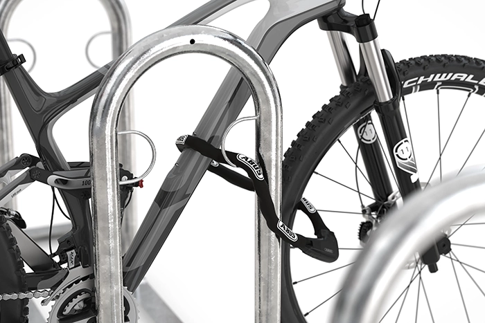 Trots sin låga kostnad kompromissar TRACK varken med kvalitet eller säkerhet. Det finns gott om plats även för större cyklar som mountainbikes och tack vare de integrerade stålöglorna kan varje cykel låsas fast på ett tryggt sätt. Med tillval som markankare kan stället förankras på fasta underlag, och flera ställ kan enkelt kopplas samman till en lång rad för större installationer.