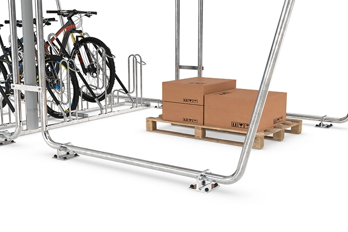 Detta cykelgarage bultas fast med hjälp av infästningar som medföljer (bultar ingår ej). Kombinera cykeltaket med ett dubbelsidigt cykelställ för att hålla ordning och reda på cykelparkeringen.