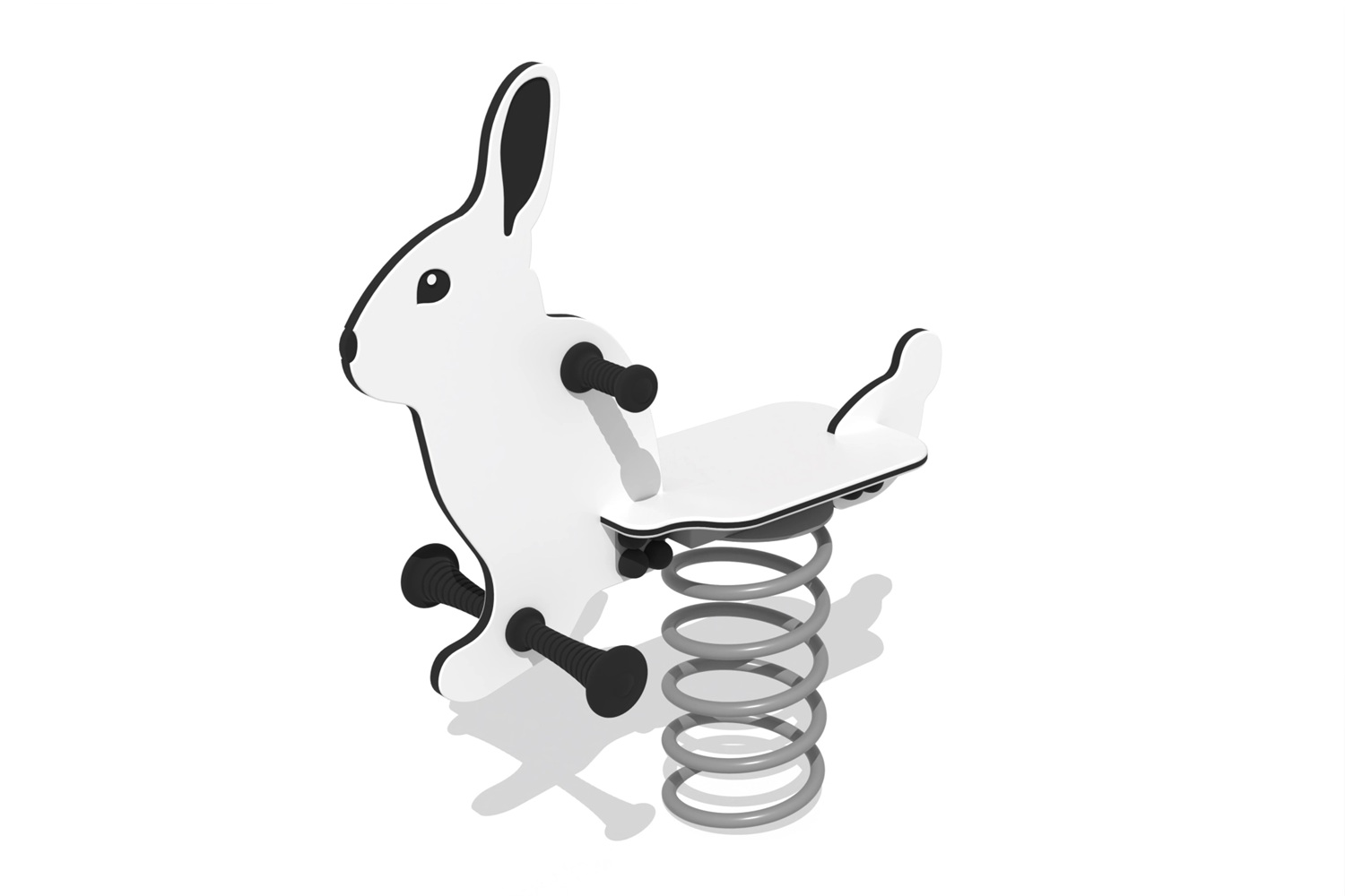 En fjädergunga med plats för ett barn, formad som en söt vit kanin – en lekfull detalj som sprider glädje på varje lekplats. 🌿