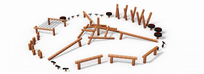 Innovativ sammansättning av certifierade produkter i syfte att skapa en motorikbana som även skapar möjligheter till leken Följa John och inte röra mark.