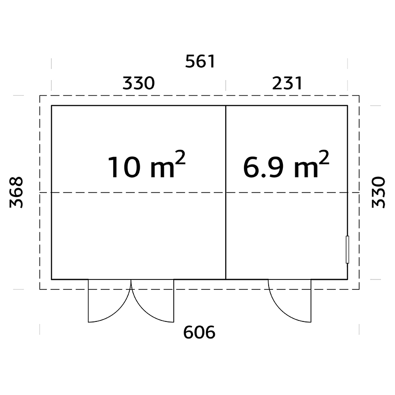 Olaf är ett smidigt och rejält förråd i klassisk stil från Palmako med två rum. Förrådet har en större del med pardörr, perfekt att förvara lite större trädgårdsmakiner, cyklar, trädgårdsmöbler, etc. Samt har ett mindre rum för trädgårdsredskap och uteleksaker som därav smidigare går att plocka ut och in via enkeldörren.