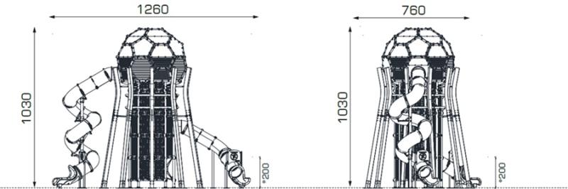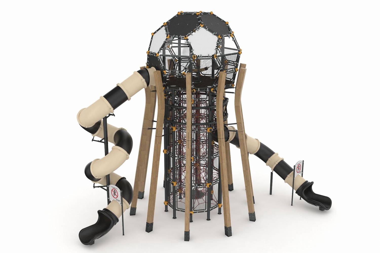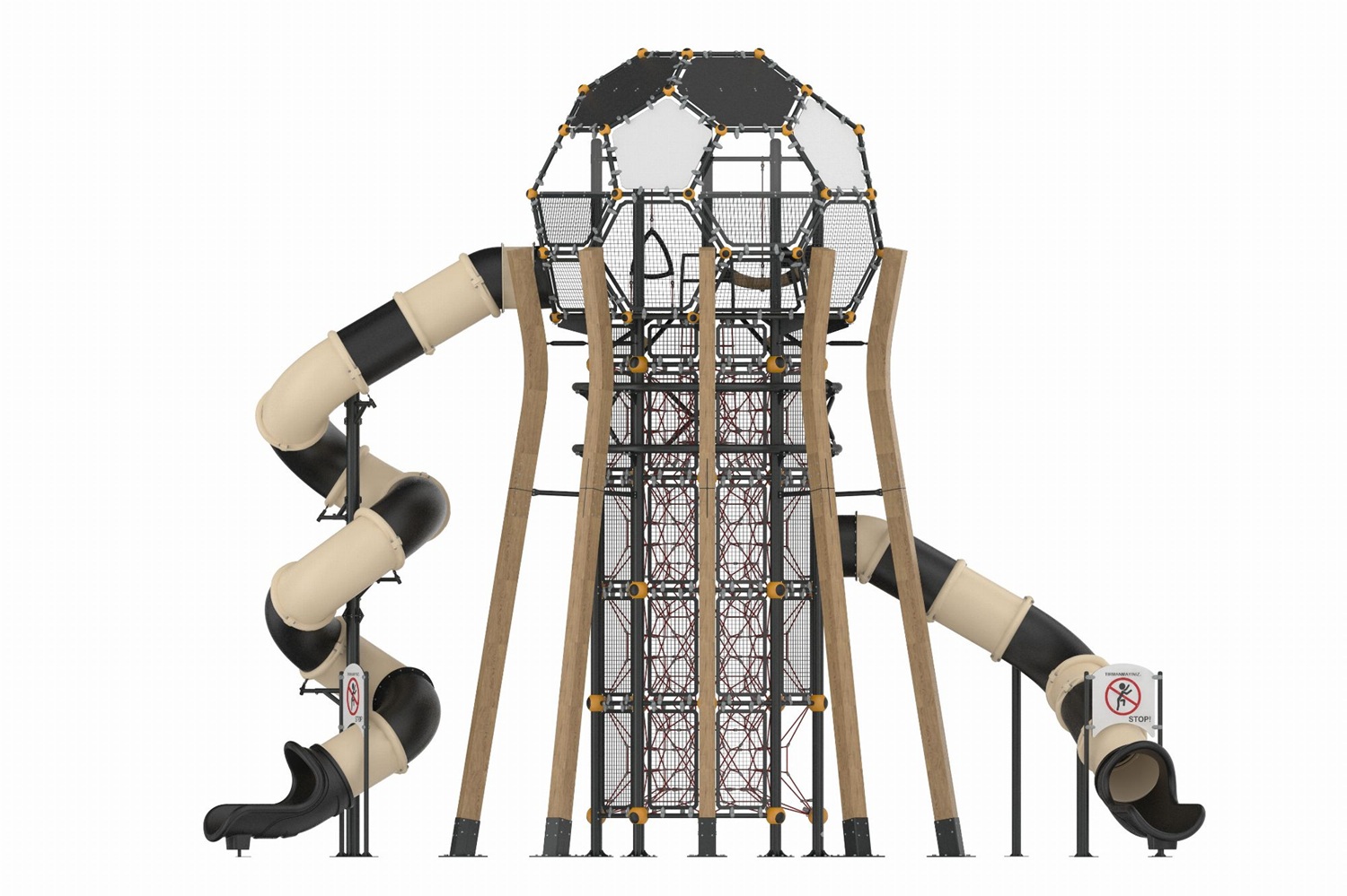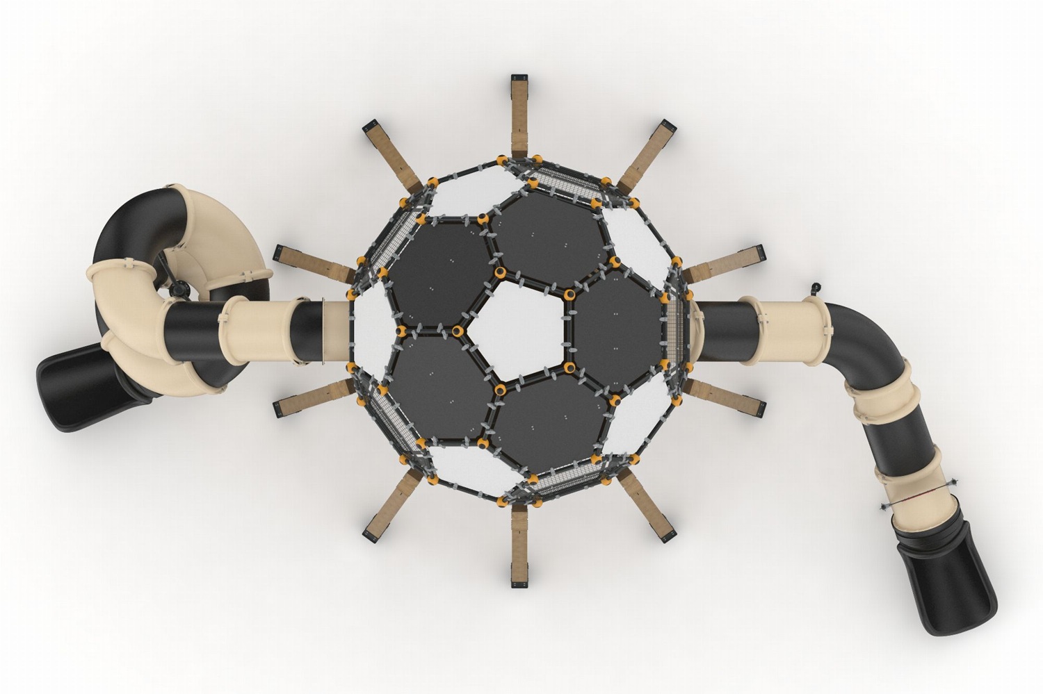 Den övre stationen – formad som en fotboll – ger barnen känslan av att vinna pokalen när de når målet, precis som i ett riktigt världsmästerskap. 🏆