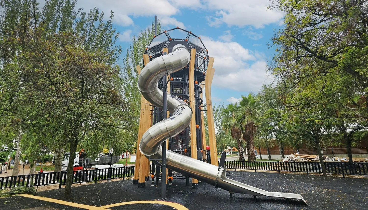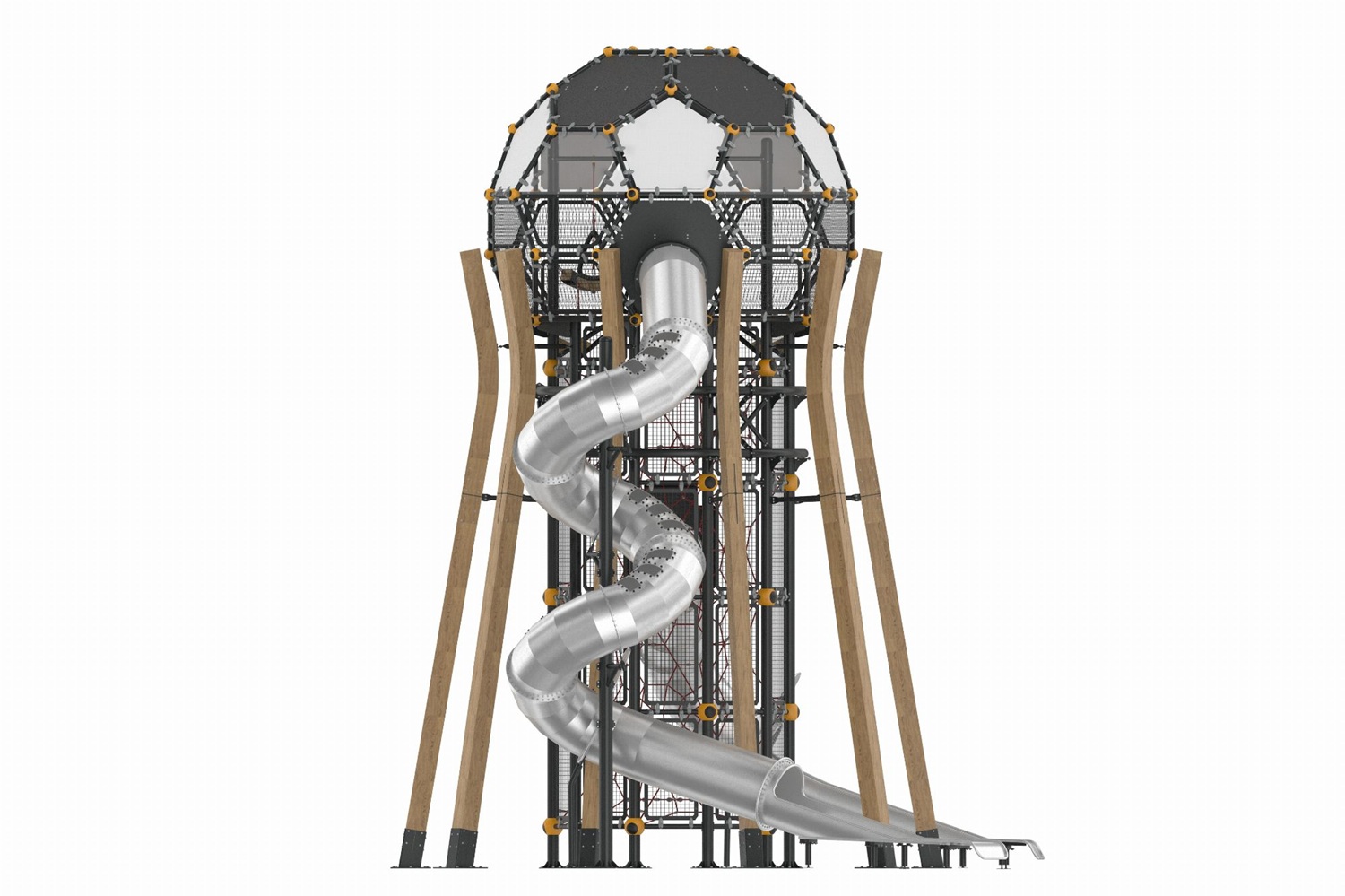 Stationen fungerar också som en utsiktsplattform längst upp i konstruktionen, där spänningen maximeras innan barnen susar ner igen i full fart. 🛝⚡