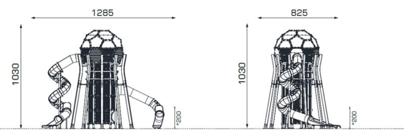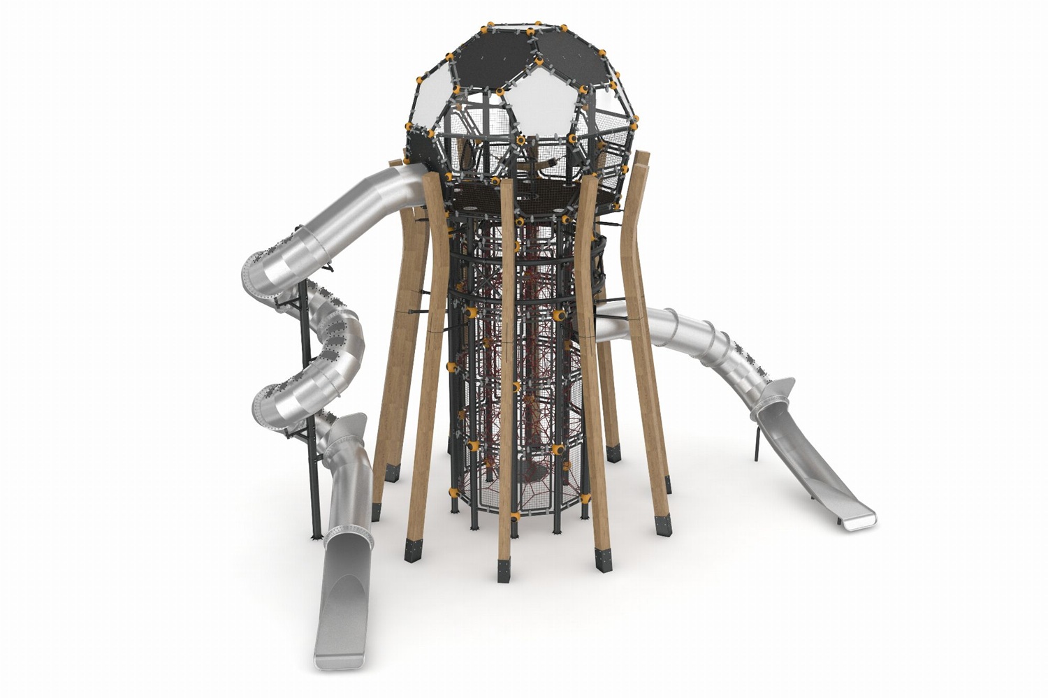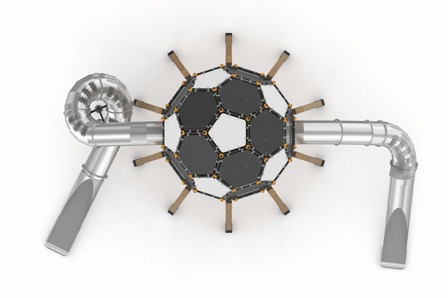 Den övre stationen – formad som en fotboll – ger barnen känslan av att vinna pokalen när de når målet, precis som i ett riktigt världsmästerskap. 🏆