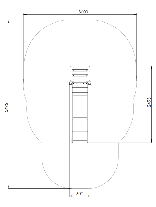 Fristående rutsch i stål, sidopaneler i HDPE.