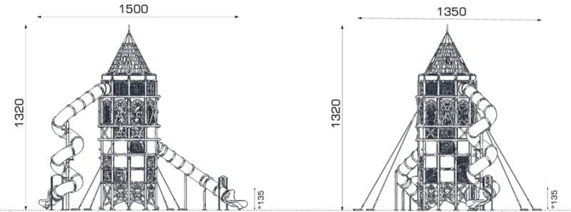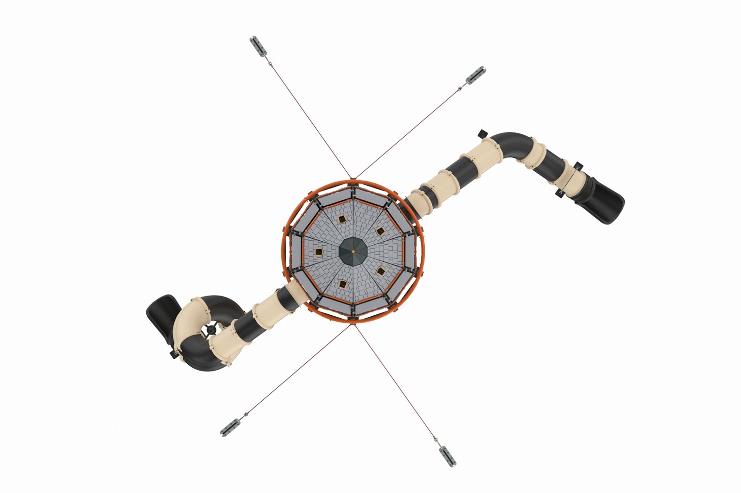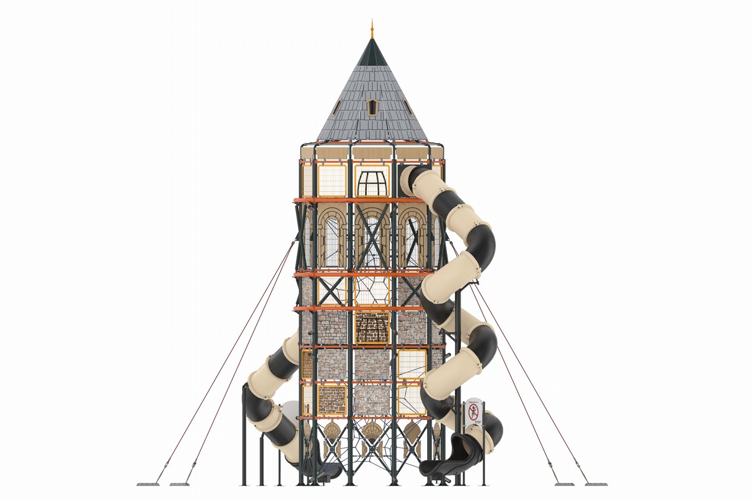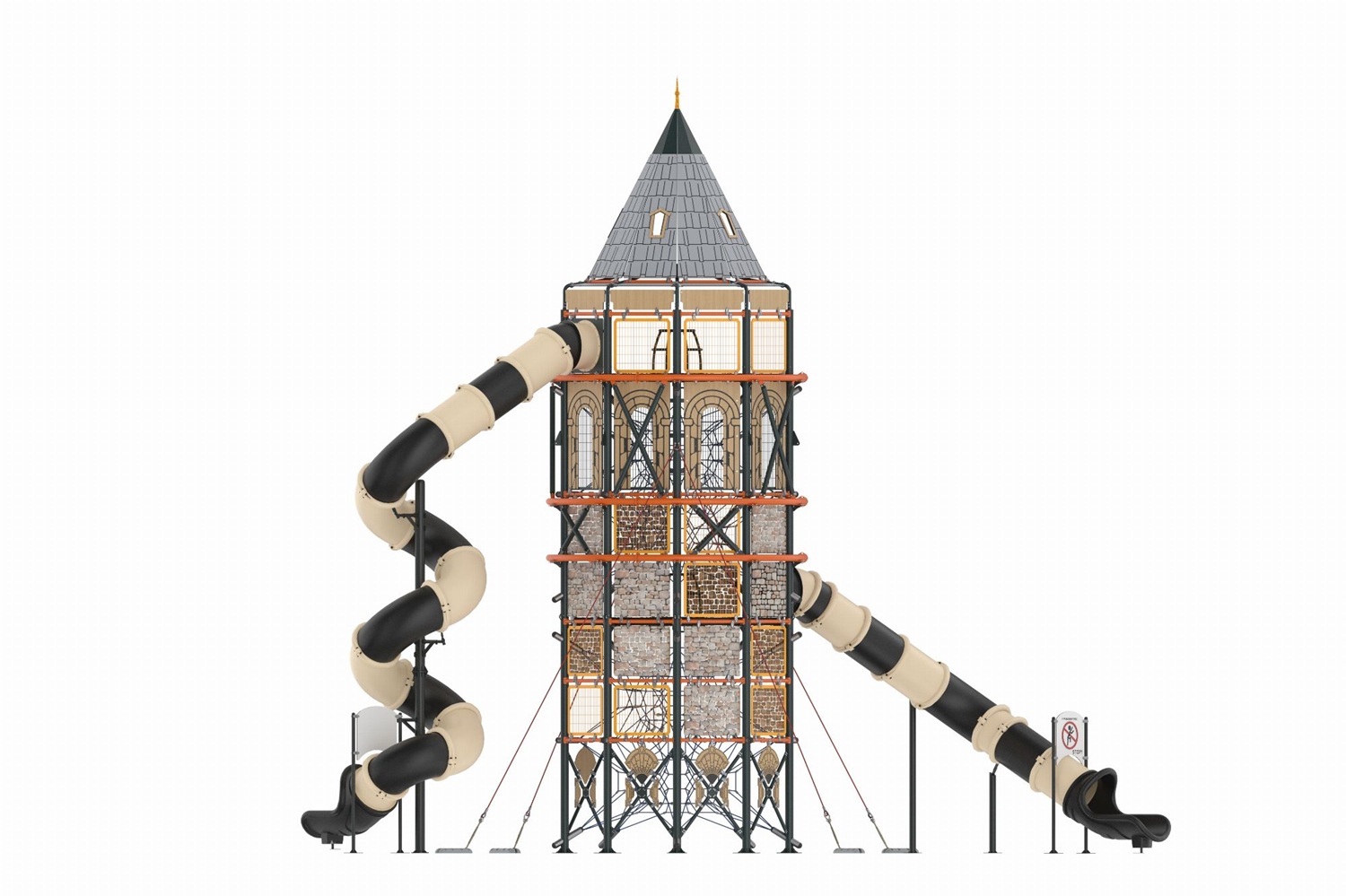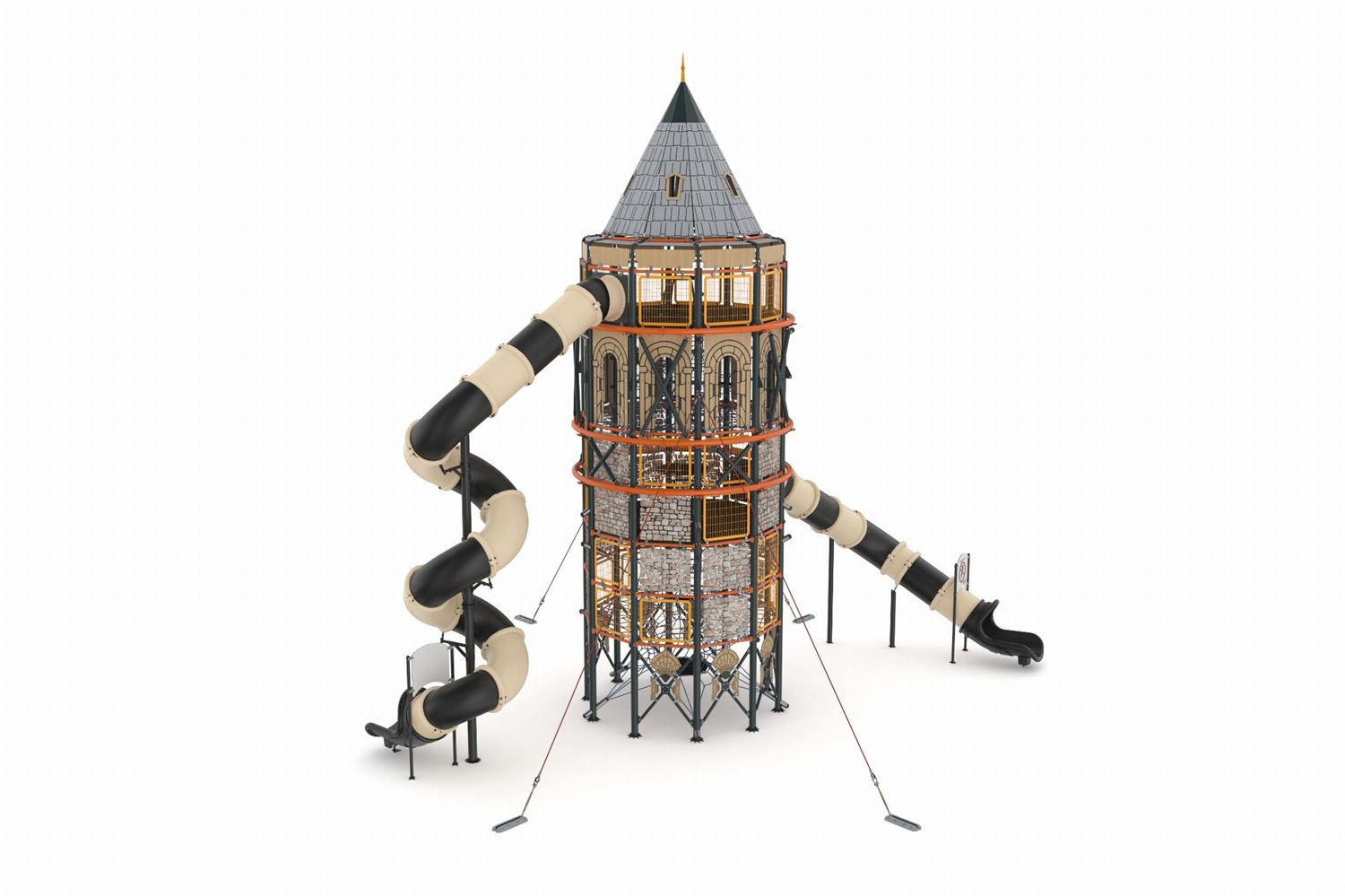 Inuti tornet finns en tredimensionell repstruktur som utmanar och stĂ€rker barnens grovmotorik, balans och koordination, samtidigt som den bjuder in till spĂ€nnande klĂ€tterĂ€ventyr. đ§ââïž