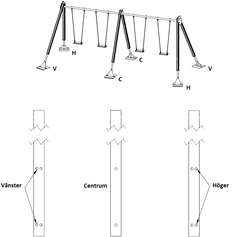 Vi använder liknande fundament även till våra övriga basprodukter som t ex lekställningar och klätterställningar.
