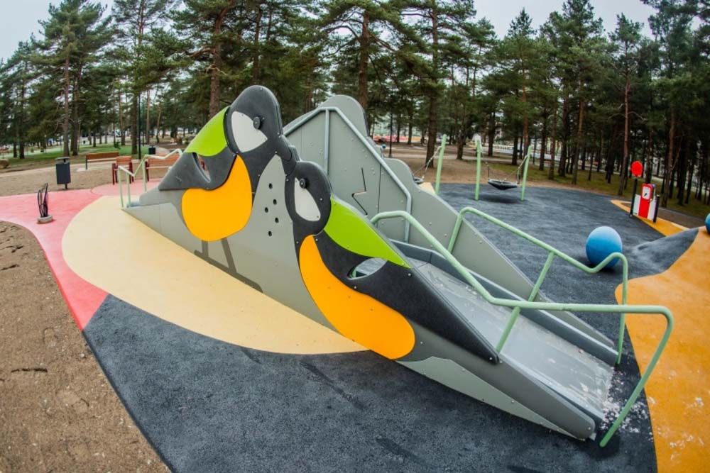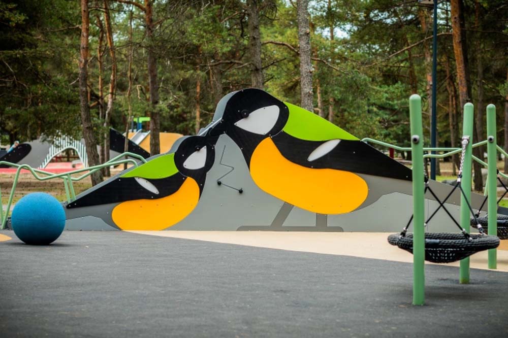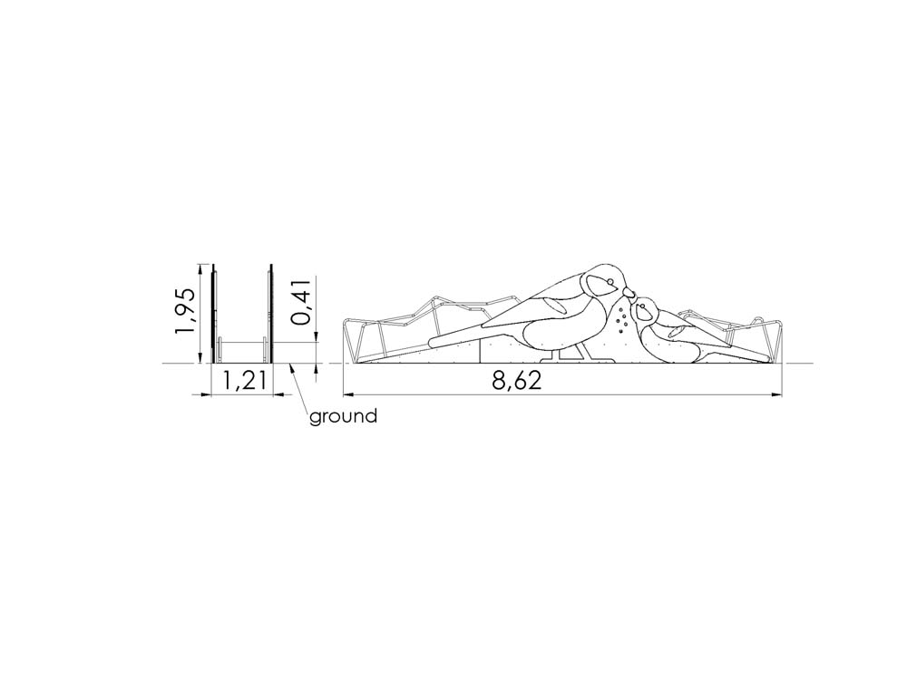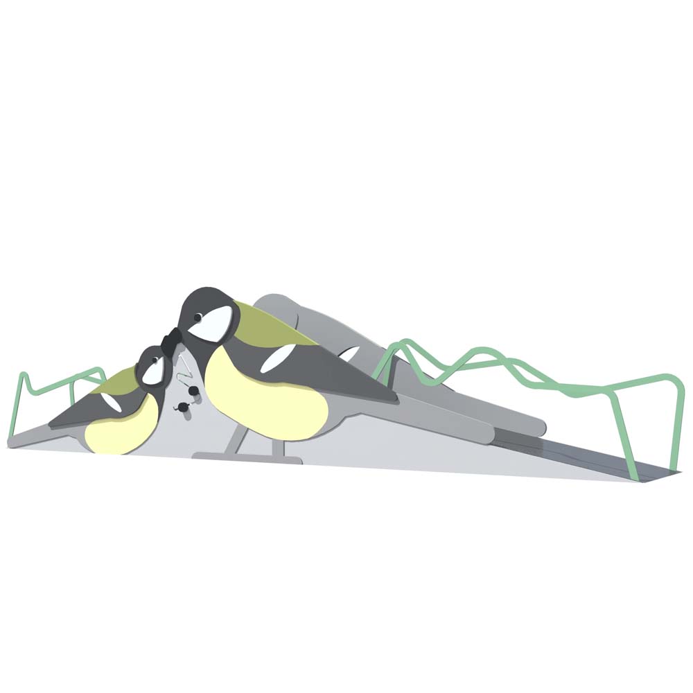Rutschkana Talgoxe med Slänt är en lekfull och tillgänglig rutschkana som kombinerar rörelse, fantasi och naturligt lekflöde. Den fågelinspirerade designen skapar en tydlig identitet på lekplatsen samtidigt som slänten ger ett mjukt och inbjudande sätt att ta sig upp.