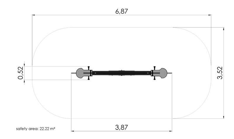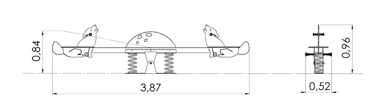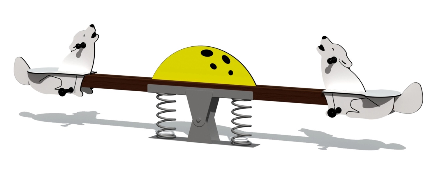 Själva gungbrädan består av två målade laminerade träbalkar, medan mekanism och fjädrar är tillverkade av galvaniserat och pulverlackerat stål. Vargformerna är gjorda av 15 mm HDPE-plast, och markfästena av varmförzinkat stål, med standardlösning för nedgjutning i marken.