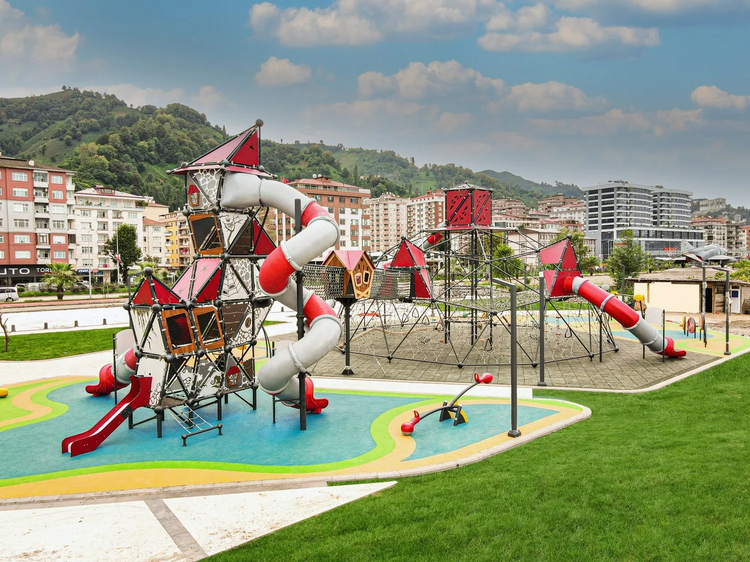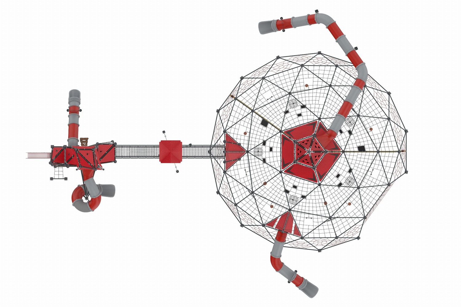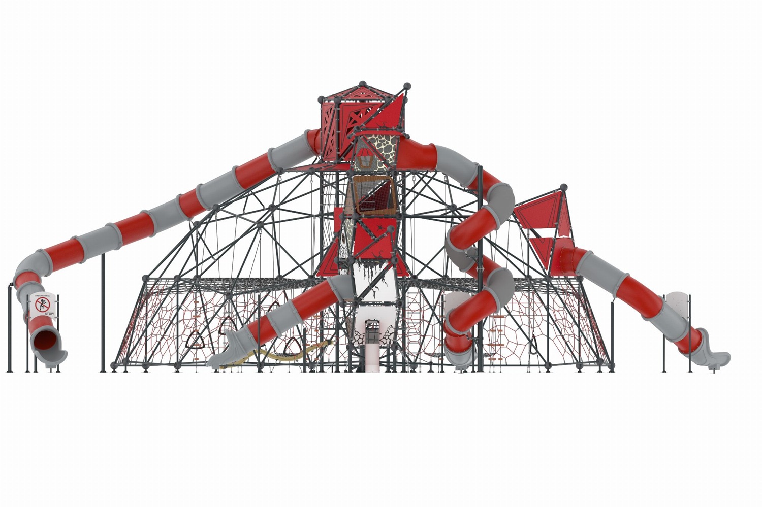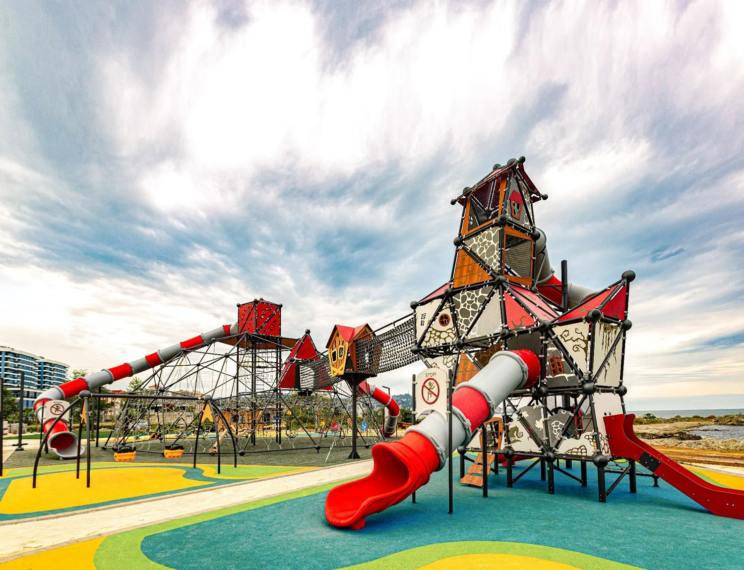Tack vare den bro som förbinder de två byggnaderna kan barnen röra sig mellan världarna och uppleva maximalt med äventyr och rollek i detta stora, fantasifulla leklandskap. 🌈