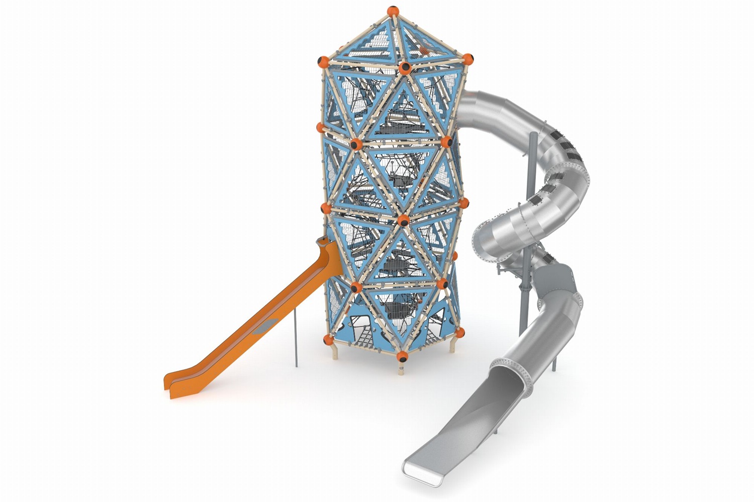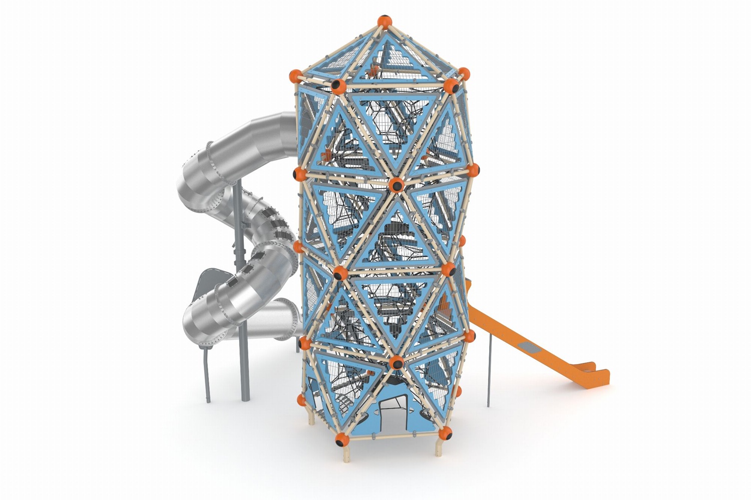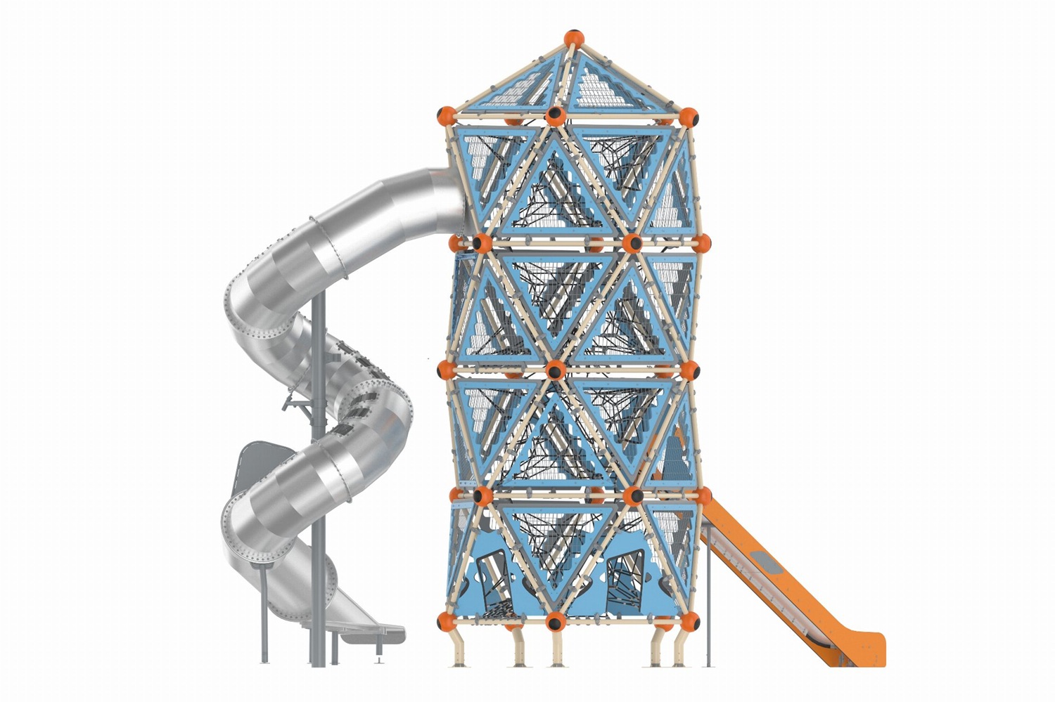 Inspirerad av Vintergatans magiska spiralform ger Helixtornet barnen en lång och spännande klätterupplevelse tack vare sina 3D-repelement inuti strukturen. ✨