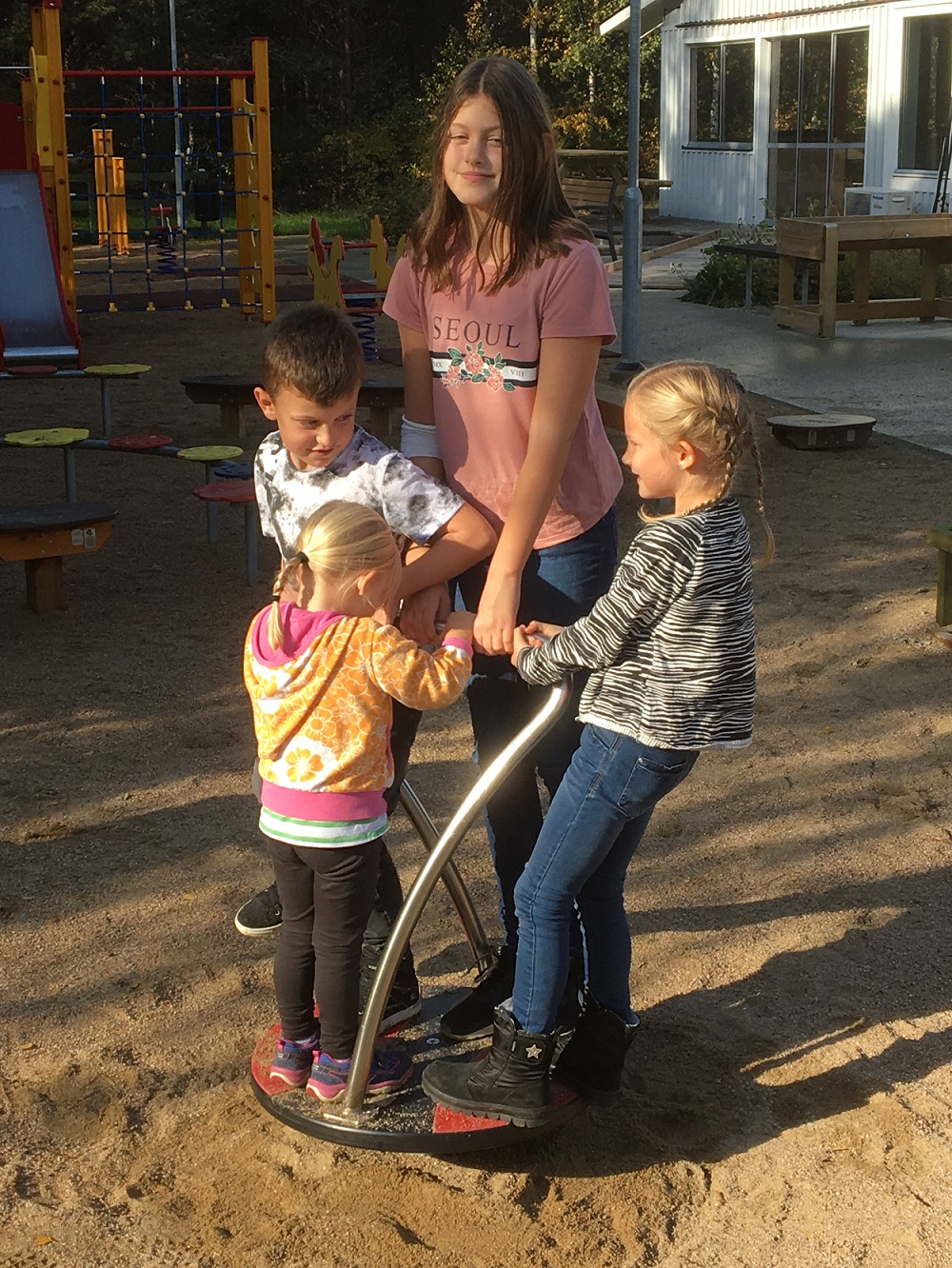 Karusellen är tillverkad i rostfritt stål och HDPE vilket är två underhållsfria material.