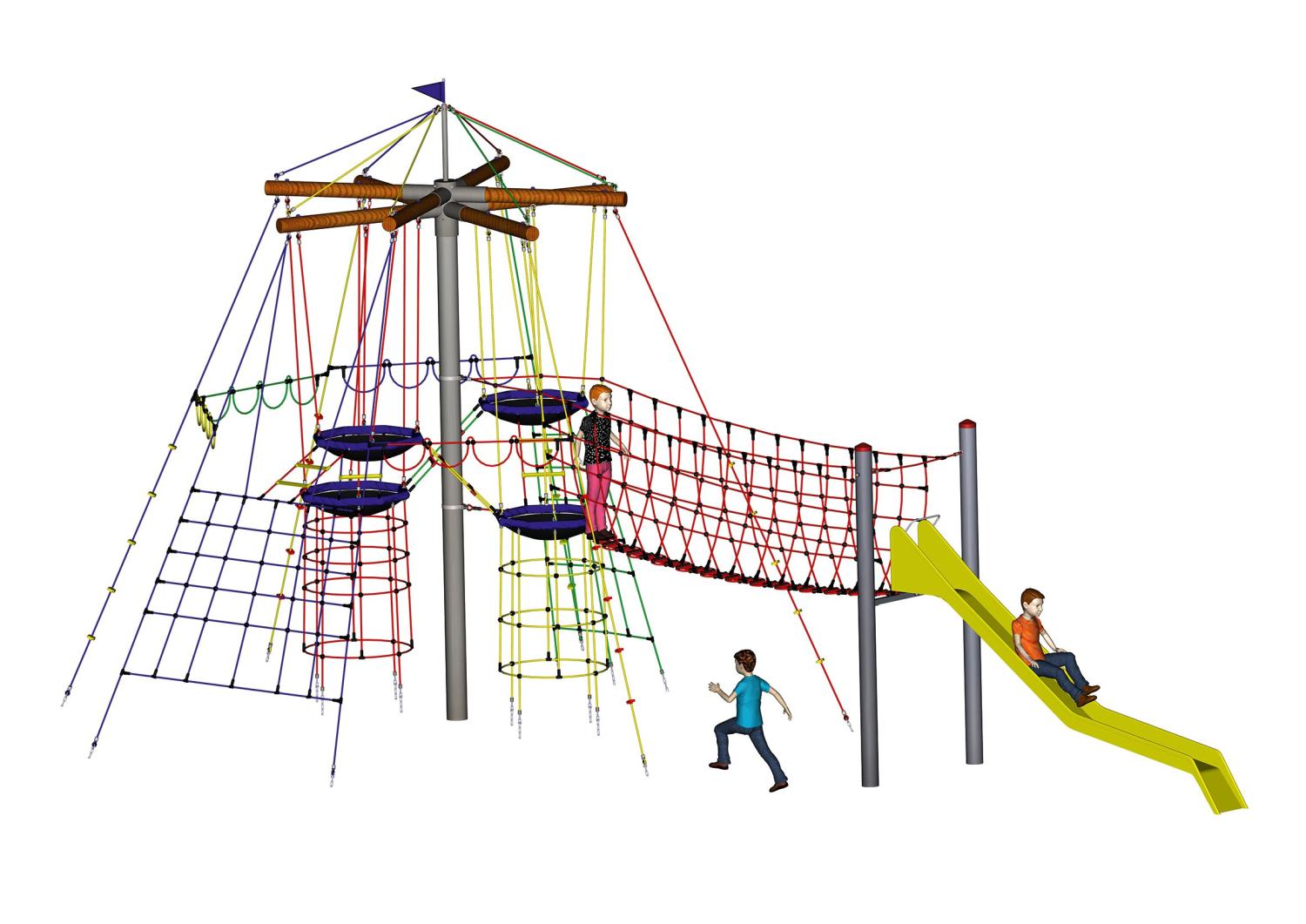 1 nätbro och 1 rutschbana.