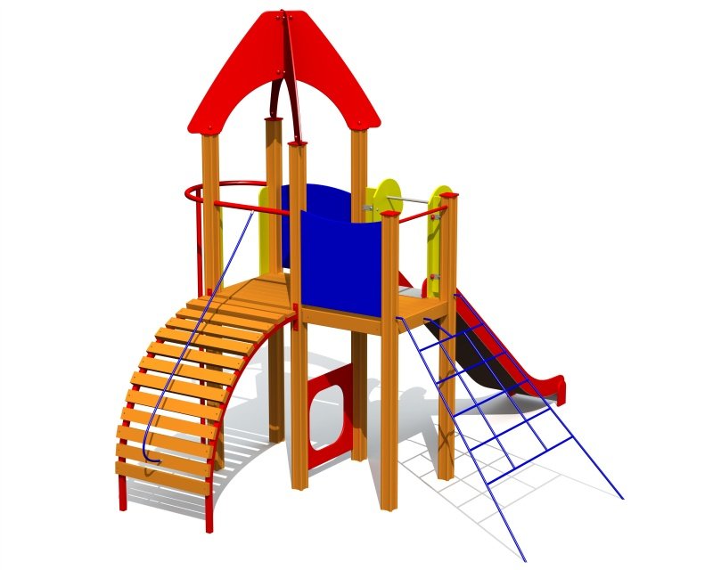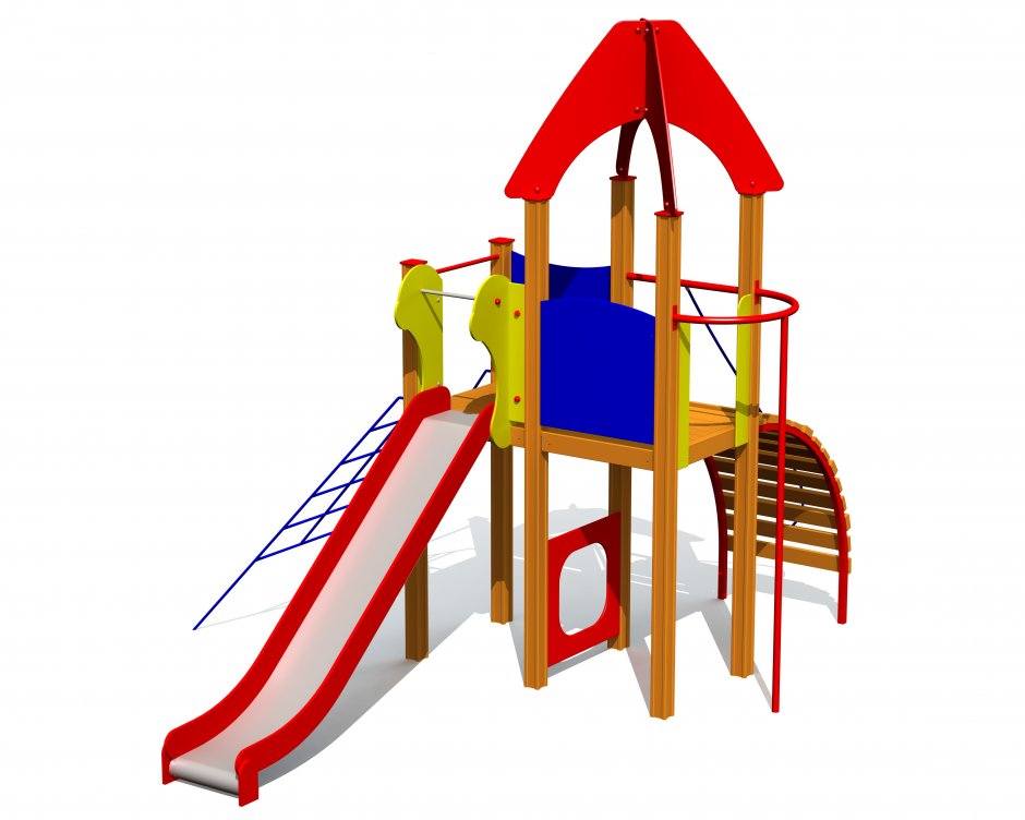 Utmaningarna består i en välvd ramp och ett klätternät. Väl däruppe väntas höjden, rutschen och brandmannastången.