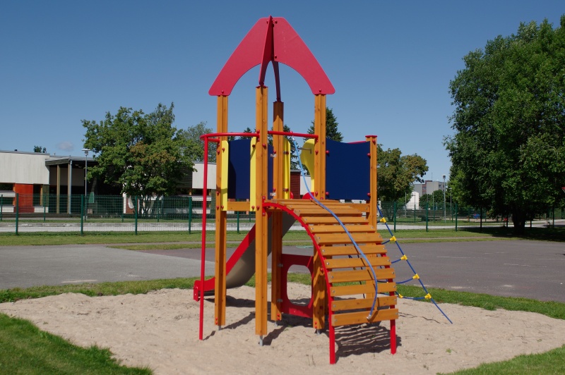 På denna lekställning tränas de lite äldre barnen på förskolan att kämpa sig upp till plattformen.