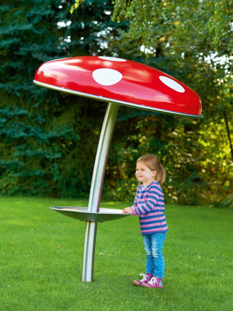 he new roof in the form of mushrooms is sun protection and game element at the same time. It seamlessly integrates in the formal language of toddler toys and animates to play together and explore the world outside.