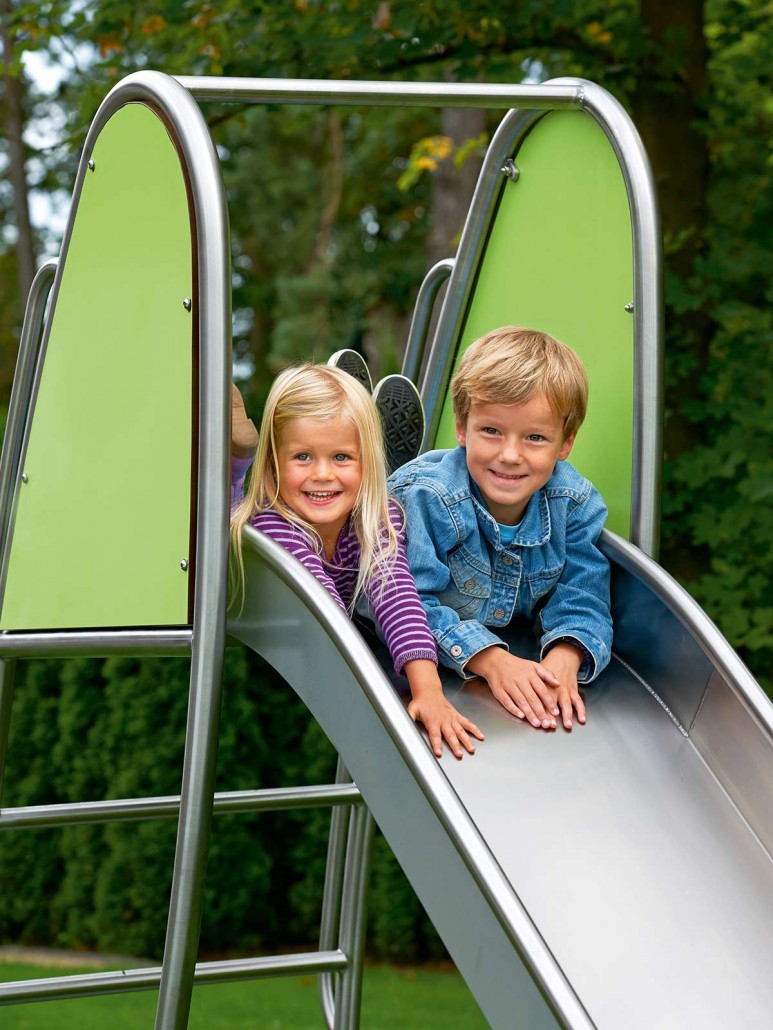 The levis slide expands stilums design-oriented slide program to include an additional play element. Conceived especially for small children and small play areas, the levis follows stilums unified design language and brings fun, creativity and style to the playground.