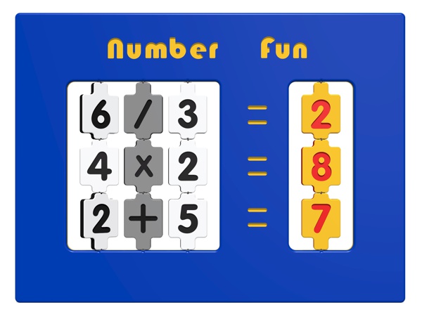 Ready to learn some maths? Rotate the flip over sums discs on the Number Fun NGP Play Panel and to create the correct answer.Constructed from HDPE panel, the product features nine flip over sums discs and stainless steel spinner shafts.