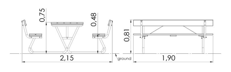 Bordet är av klassisk modell med bänkar på båda sidor och tillverkat för att tåla flitig användning och varierande väderförhållanden. ✨