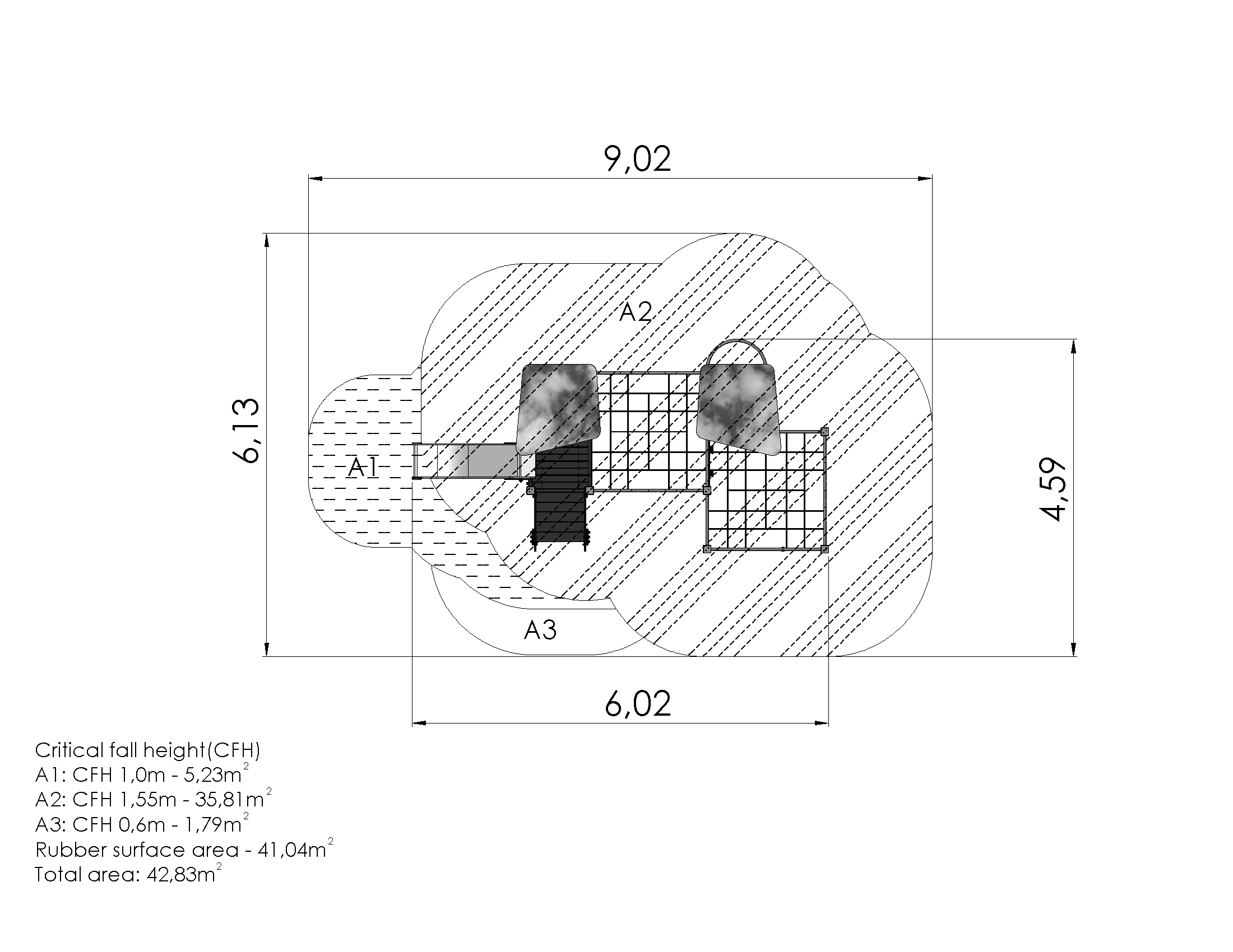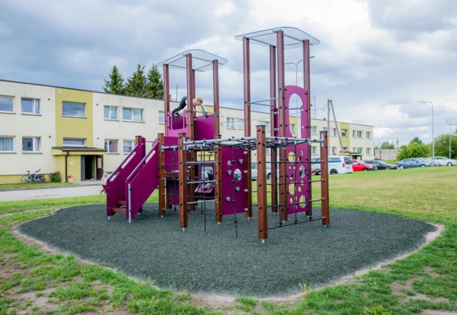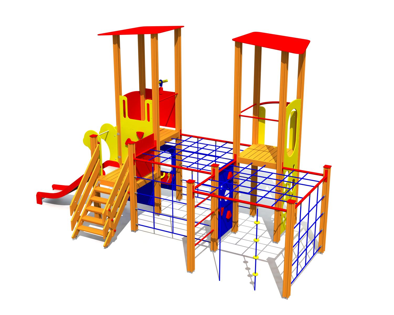 Felicia är en tjusig klätterställning med två torn, rutsch och klätterboxar mellan tornen.