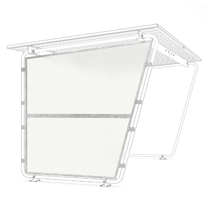 Komplettera ditt Siegen-skydd med en robust och stilren sidovägg som ger extra skydd mot väder och vind. Den här sidopanelen består av en tvådelad, varmförzinkad stålram med slät, ljusgenomsläpplig polyesteryta – ett hållbart och lättskött material som släpper igenom dagsljus men skyddar mot regn.