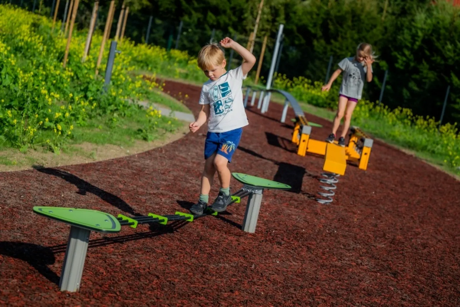 Aktiviteten utvecklar också koncentration och fokus, eftersom barnen måste vara uppmärksamma på sina rörelser och fotens placering för att hålla sig i balans. Samtidigt tränas problemlösning när de lär sig fördela vikt och justera sina rörelser. 💪