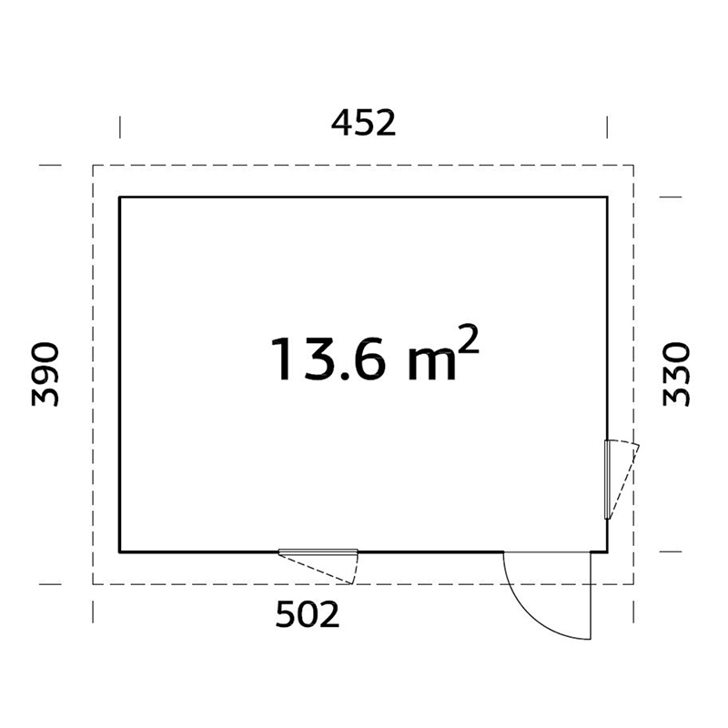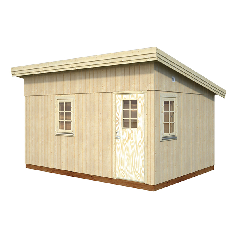 Stugan är tillverkad av långsamtväxande nordisk gran, som är ett hållbart material med hög kvalitet och lång hållbarhet. De färdiga väggelementen är förstärkta med vind- och fuktskyddande fibermembran som gör att stugan blir extra motståndskraftig mot tuffa väderförhållanden och minimerar risk för fuktskador. Har öppningsbara 2-glasfönster som är försedda med gummitätning och dropplist i aluminium. Dörr är isolerad med 40 mm EPS-isolering, har sparkplåtar och riktiga lås så du kan känna dig säker. Väggarna är även förberedda för isolering vid behov. Det är möjligt att isolera stugan med 70 mm isolering i regelväggen